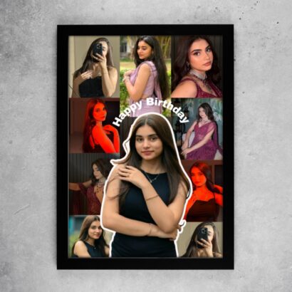 Celebrate someone’s special day with this beautifully crafted birthday collage frame! Featuring a collection of personal photos arranged with a central highlight and “Happy Birthday” greeting, this design adds a personal and stylish touch to any room. Perfect as a thoughtful birthday gift for friends, sisters, or loved ones. Printed on premium-quality material and framed for lasting memories.