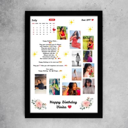 Bright, fun, and full of love – this frame blends doodles with a calendar and lovely photos.